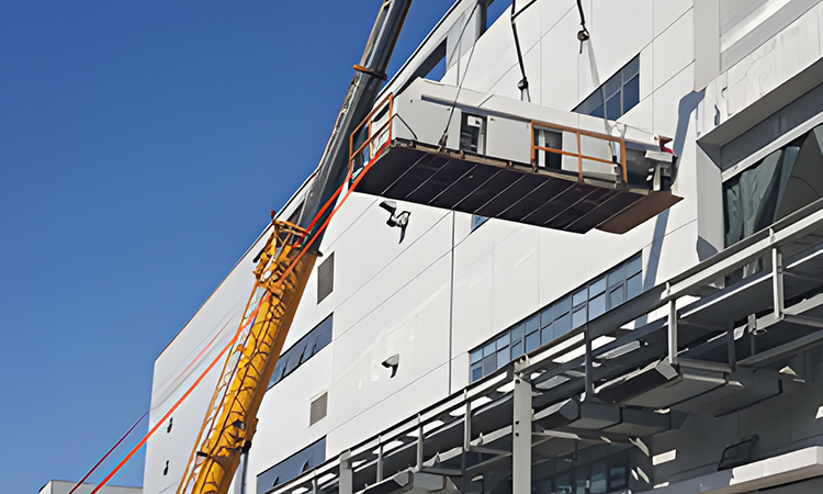 Move equipment using specialized lifting, hoisting, and assembly construction equipment, devices, and tools, employing professional hoisting techniques
